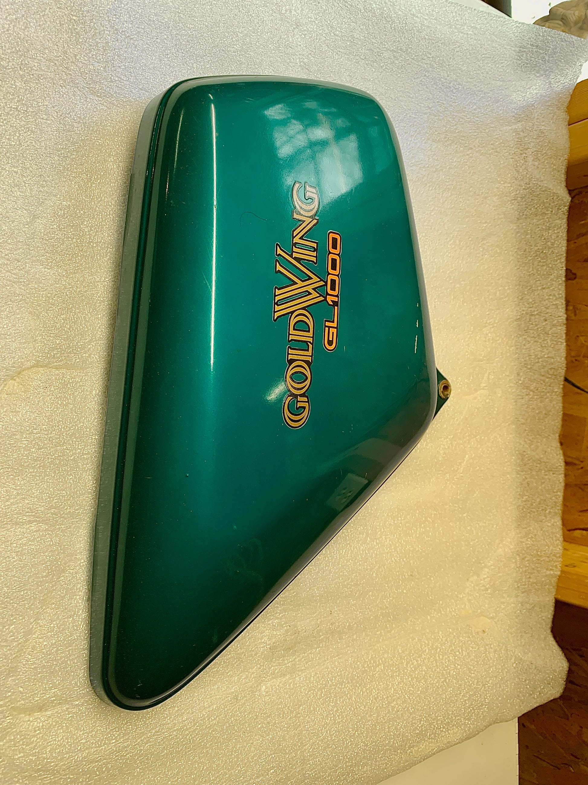 1975 Honda GL1000 Goldwing Left side cover plate L Candy Blue Green