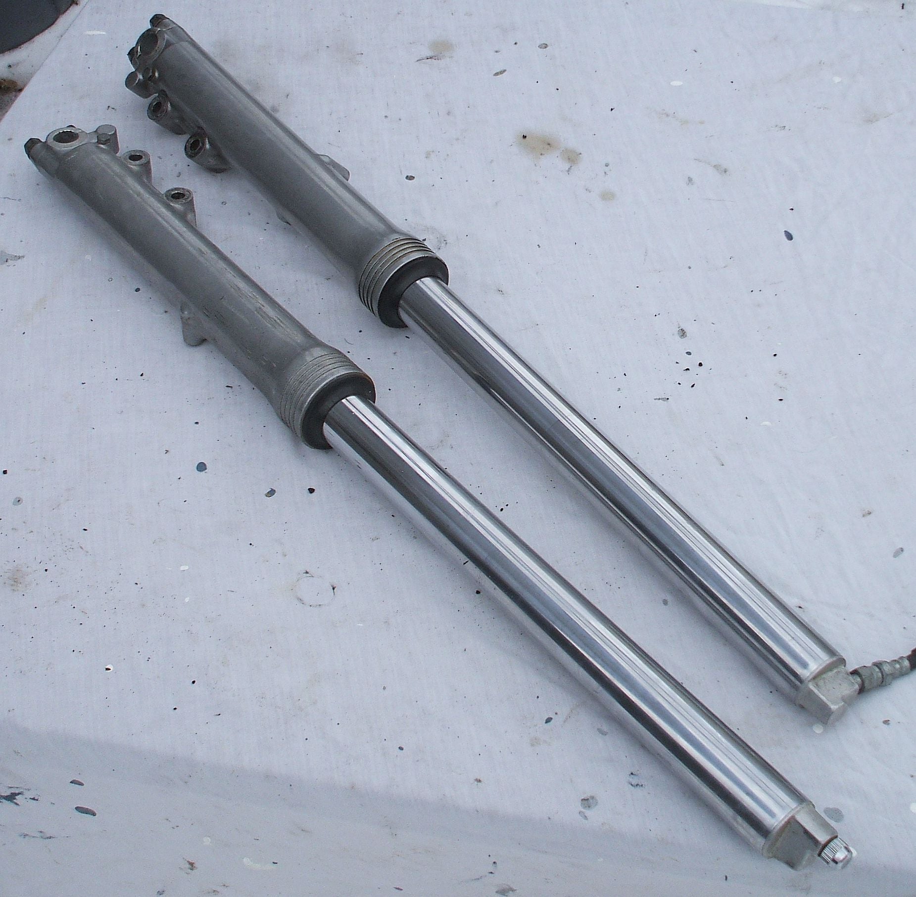 1981 Honda GL1100 GOLDWING FORK FRONT FORKS SHOCK ABSORBER. These are in good shape no pitting on the uppers nice and straight. Seals seem to be holding but i would replace them because of their age. There are some scrapes on one of the lowers, see photo.      OEM Honda part # 51500-463-003