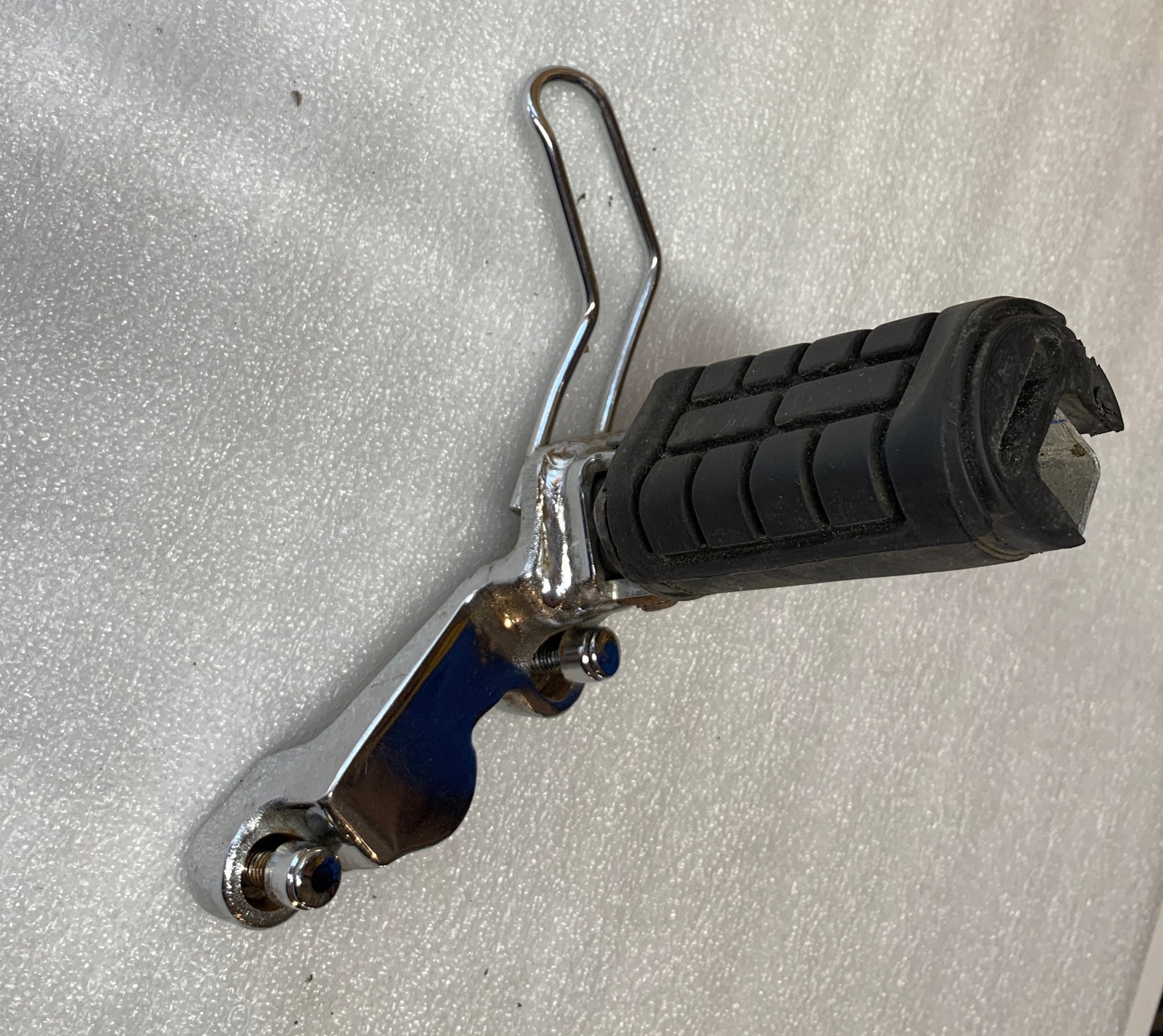 1986 Honda VT700 Shadow 86 Foot Peg Main Step Right R OEM Honda Part # 50610-MR6-670 (replaces 50610-MK7-010, 50610-MK7-000) Chrome end cap is missing