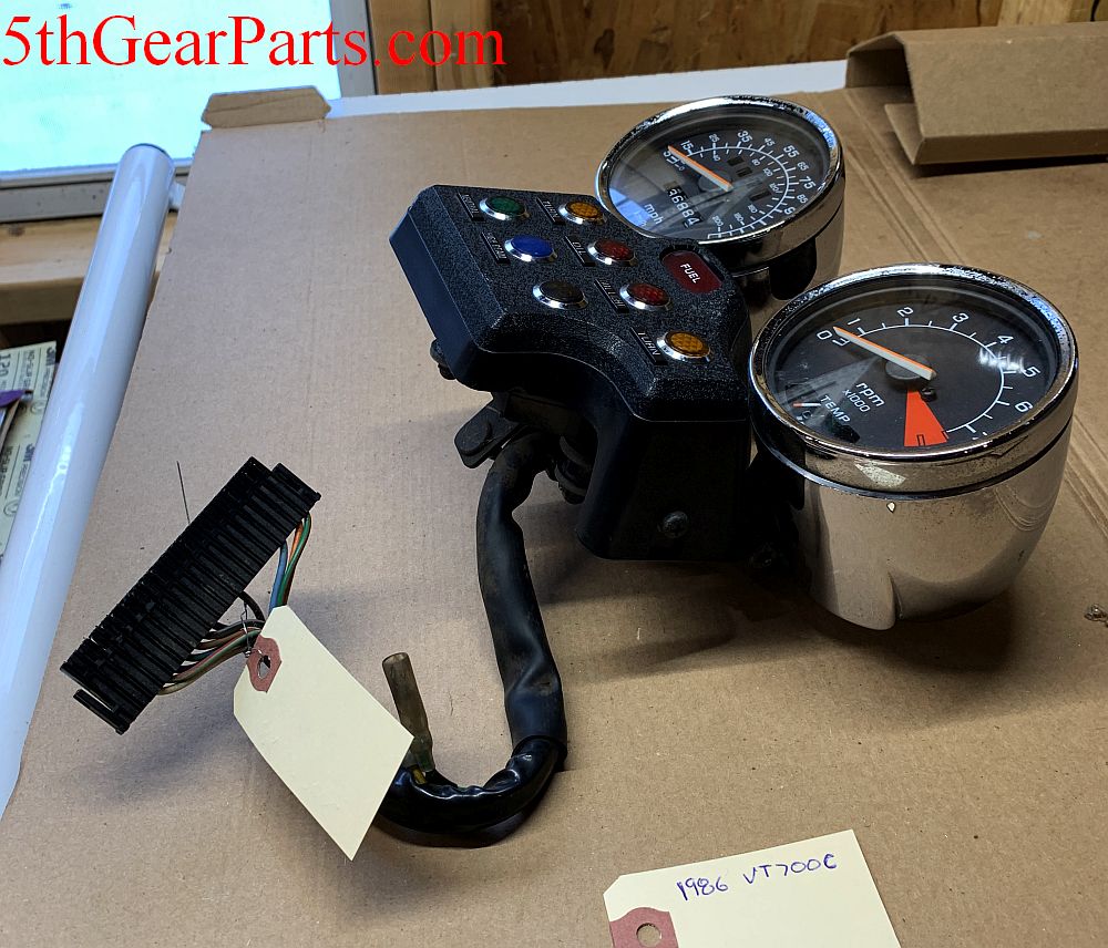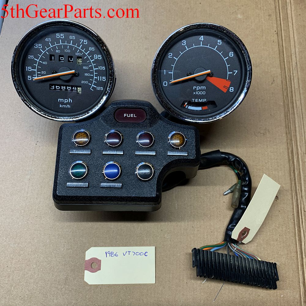 1986 Honda VT700 Shadow 86 Speedometer Tachometer OEM Honda Part # Speedometer 37200-MK7-772 (replaces 37200-MR6-671, 37200-MK7-671, 37200-MK7-771) Tachometer 37250-MK7-772